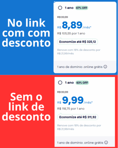 Link com desconto Planos HOSTGATOR de 12,5% conforme imagem abaixo